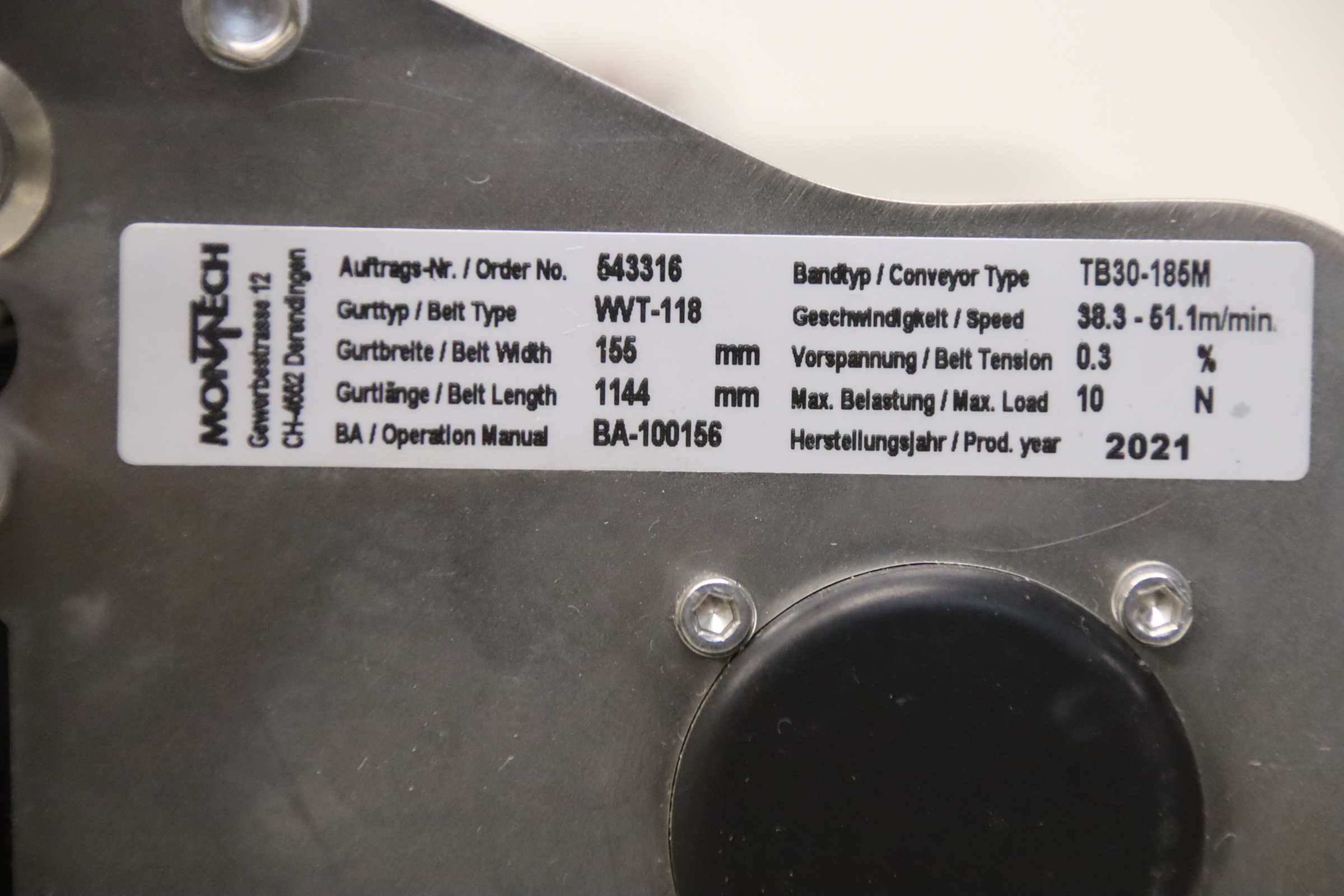 -Hersteller: Montech, Gurtförderer Typ TB30-185M mit einstellbaren Führungsschienen