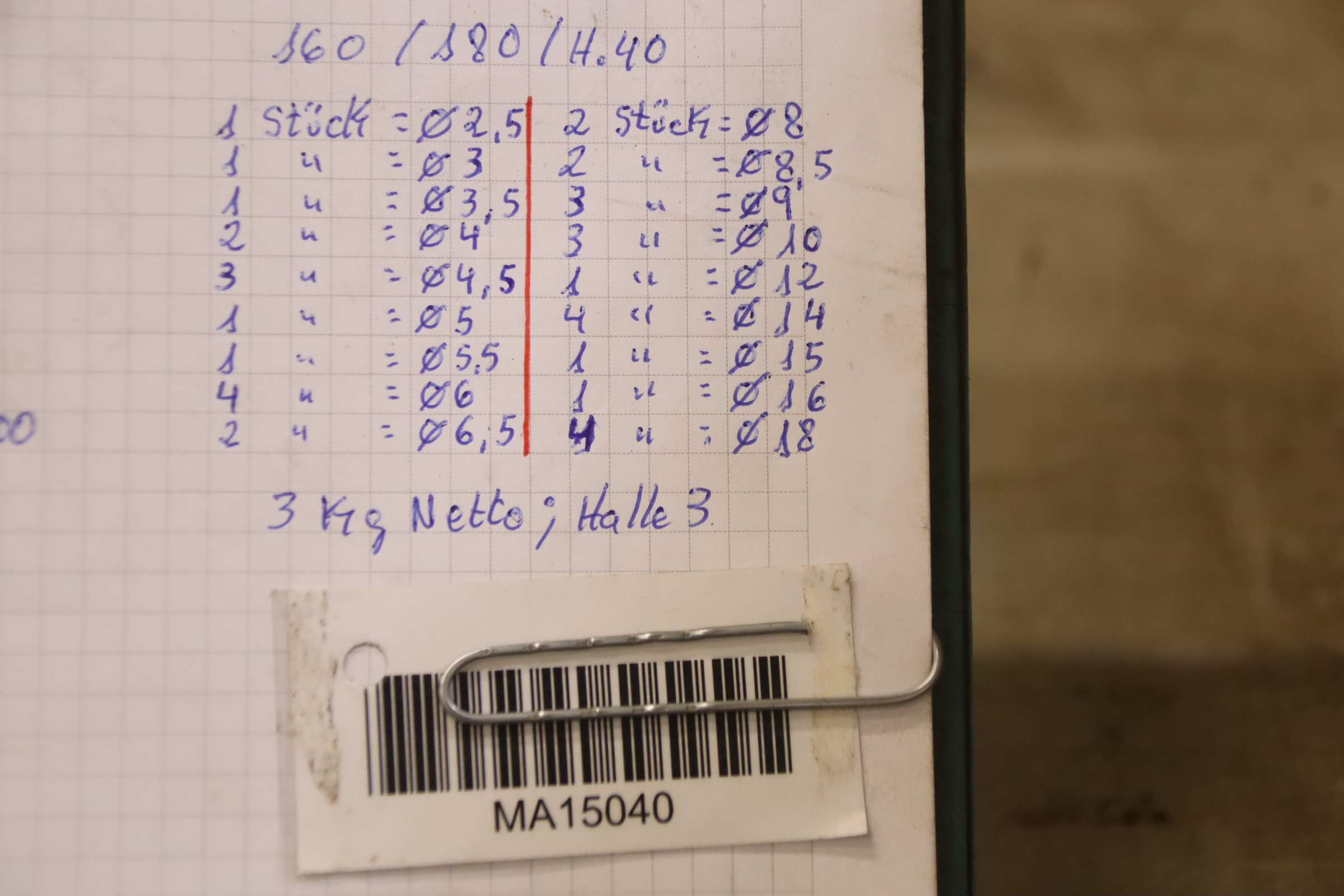 -Größen: Ø 2,5 – 18 mm, siehe Fotos / Stückliste