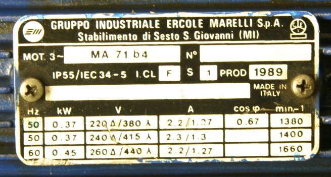 -Antrieb Getriebmotor: 0,37 kW