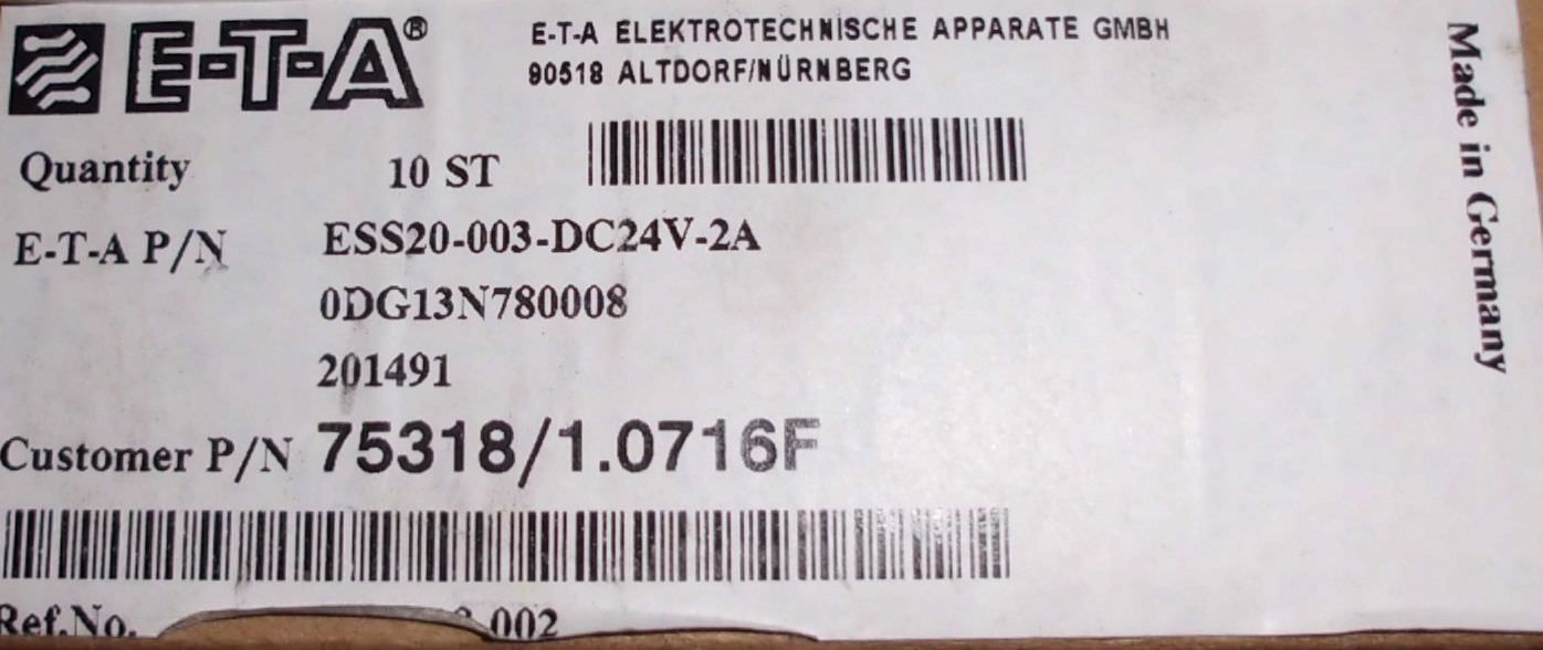Schutzschalter von ETA – ESS20-004-DC24V-2A im Zustand: gut und am Standort der Ware: 26215 Wiefelstede, DE