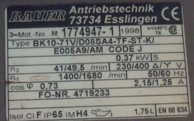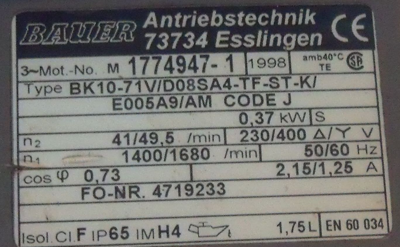 Getriebemotor 0,37 kW 41 U/min von BAUER – BK10-71V im Zustand: gut und am Standort der Ware: 26215 Wiefelstede, DE