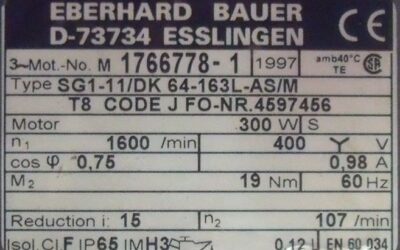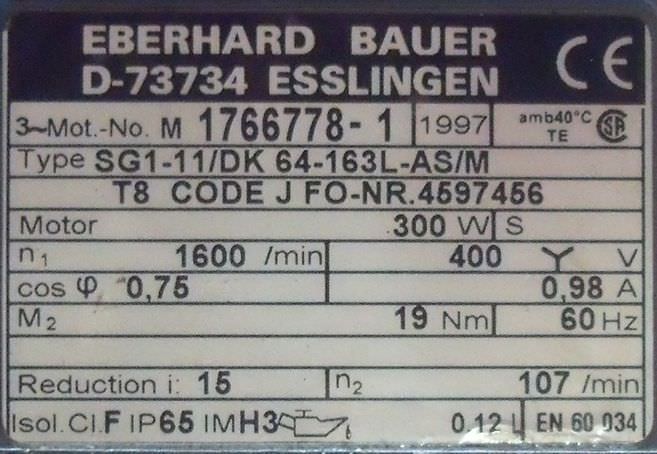 Getriebemotor 0,3 kW 89 U/min von BAUER – SG1-11/DK 64-163L-AS/M im Zustand: gut und am Standort der Ware: 26215 Wiefelstede, DE