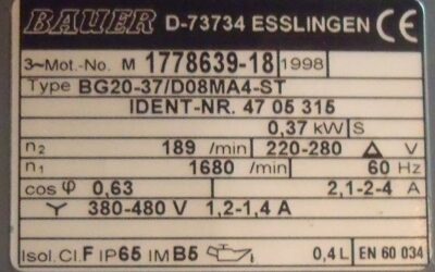 Getriebemotor 0,37 kW 157 U/min von BAUER – BG20-37 im Zustand: sehr gut und am Standort der Ware: 26215 Wiefelstede, DE