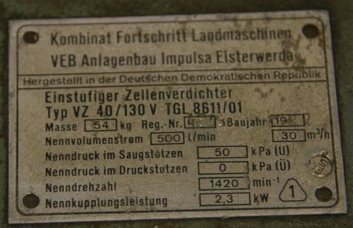 Vakuumpumpe 3 kW 30 m³/h von VEM – VZ 40/130V im Zustand: gut und am Standort der Ware: 26215 Wiefelstede, DE