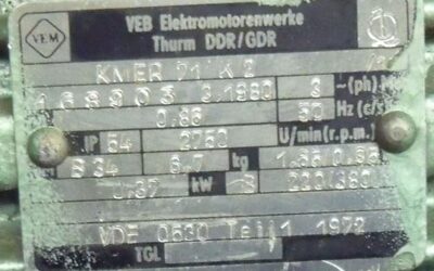 Elektromotor 0,37 kW 2750 U/min von VEB – KMER71K2 im Zustand: gut und am Standort der Ware: 26215 Wiefelstede, DE