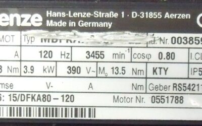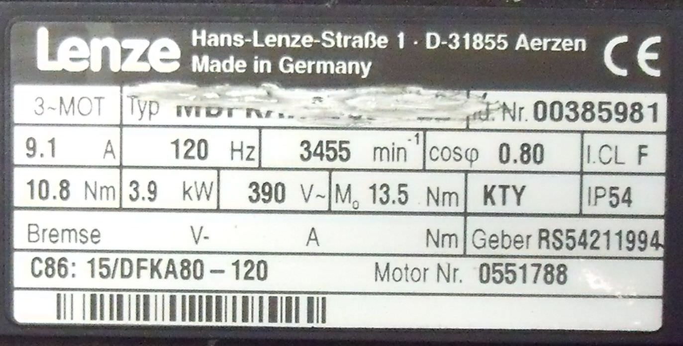 Servomotor 3,9 kW 3455 U/min von Lenze** – MDF im Zustand: gut und am Standort der Ware: 26215 Wiefelstede, DE