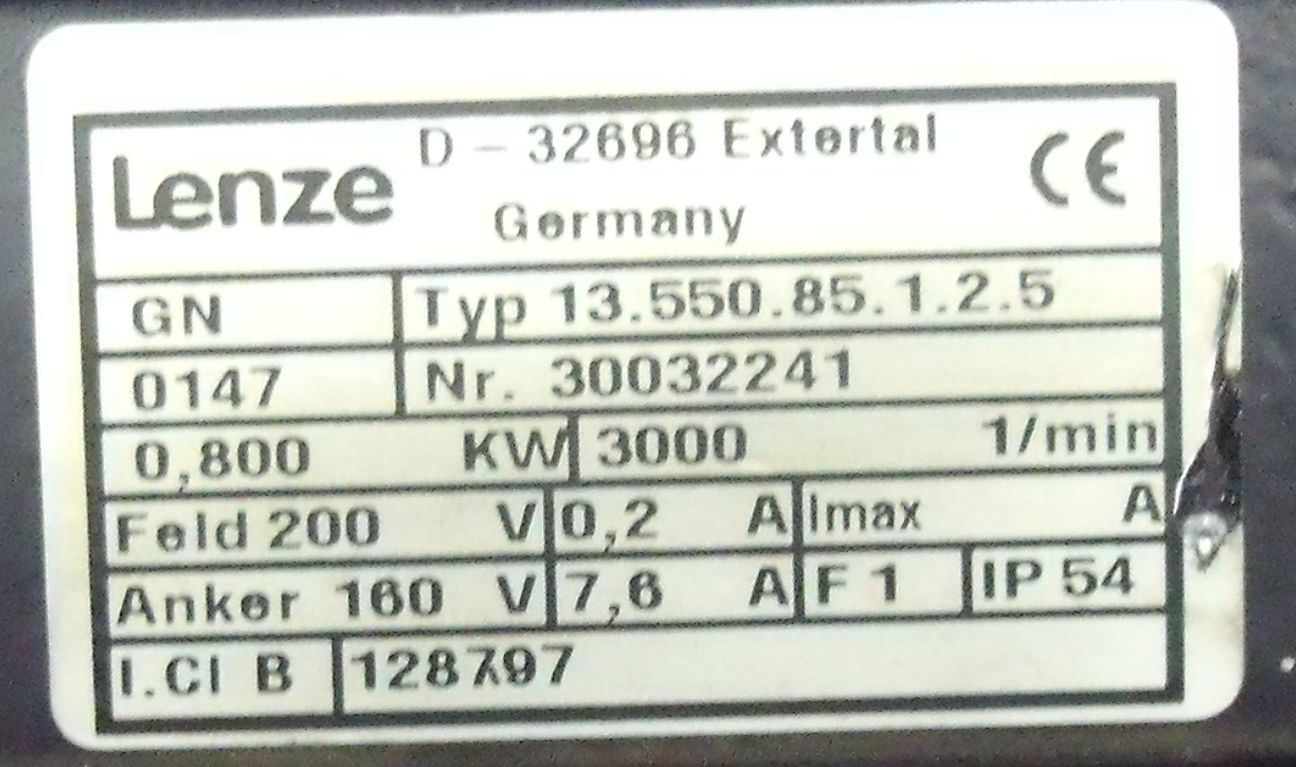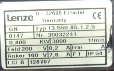 Getriebemotor 0,8 kW 750 U/min von LENZE – 13.550.85.1.2.5 im Zustand: gut und am Standort der Ware: 26215 Wiefelstede, DE