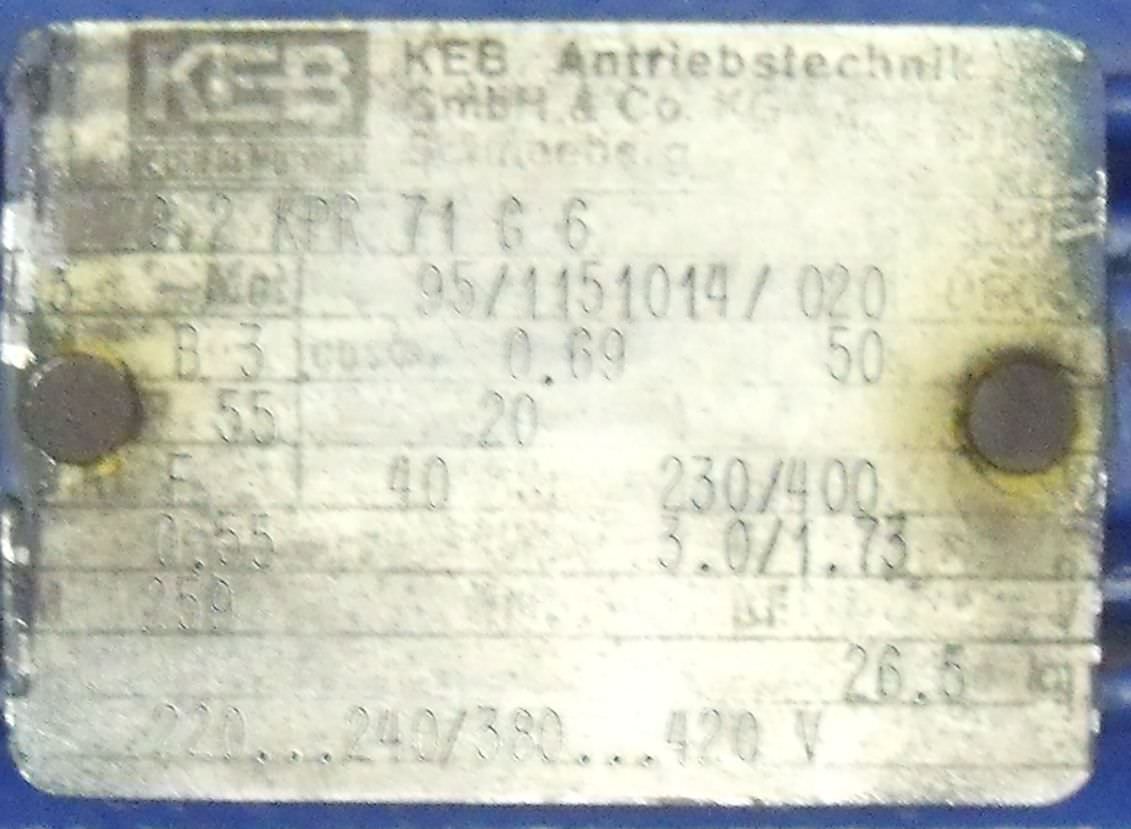 Getriebemotor 0,55 kW 259 U/min von KEB – KMB/18010086 im Zustand: gut und am Standort der Ware: 26215 Wiefelstede, DE