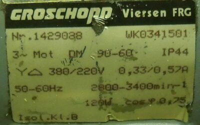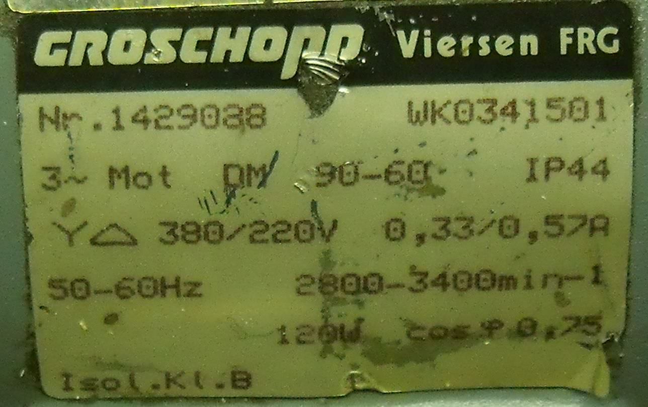 Getriebemotor 0,12 kW 784 U/min von Groschopp – WK0341501 im Zustand: gut und am Standort der Ware: 26215 Wiefelstede, DE