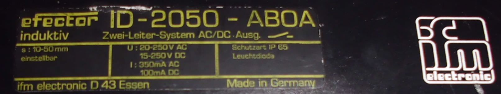 Induktiver Sensor von IFM – ID-2050-ABOA im Zustand: gut und am Standort der Ware: 26215 Wiefelstede, DE